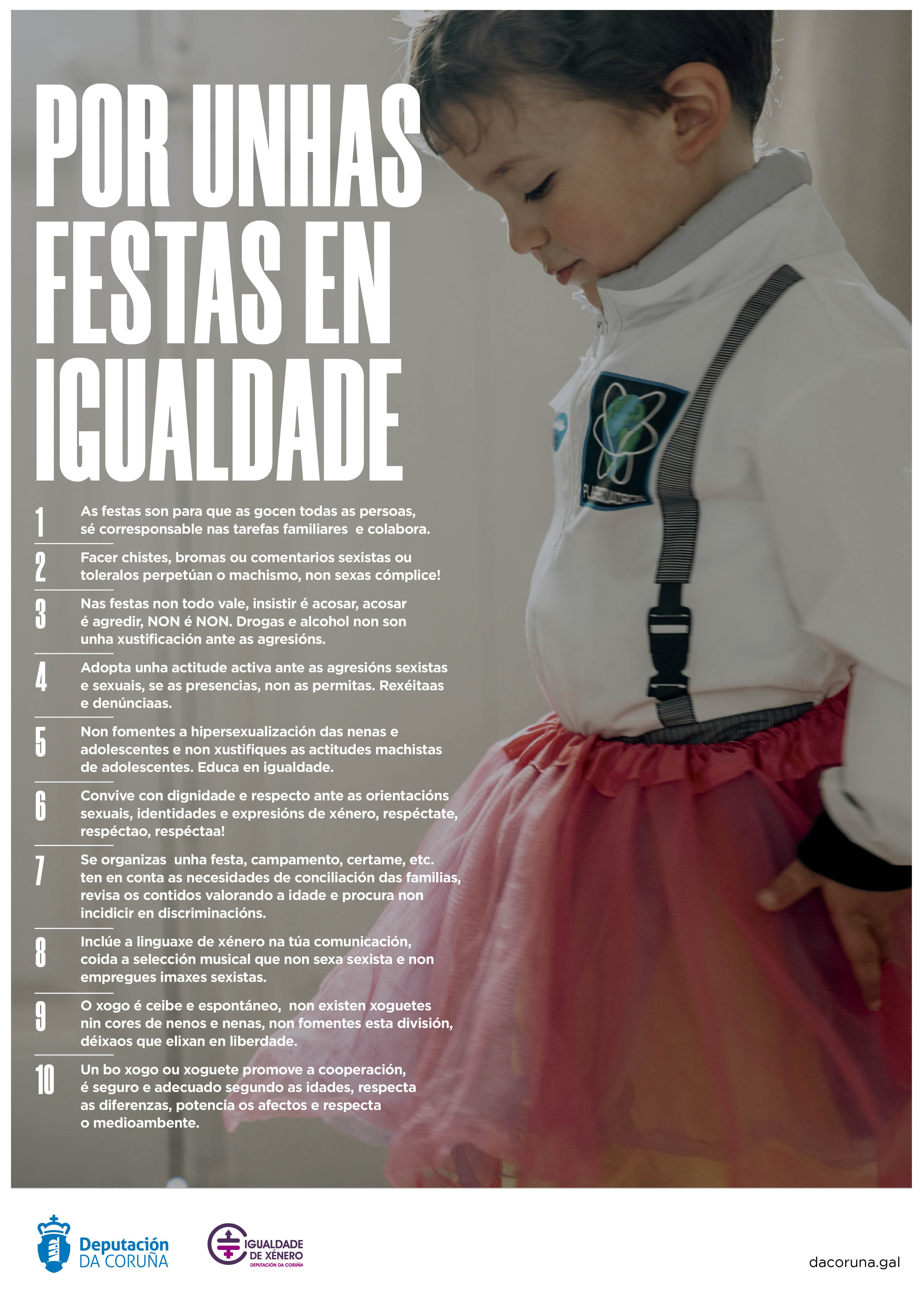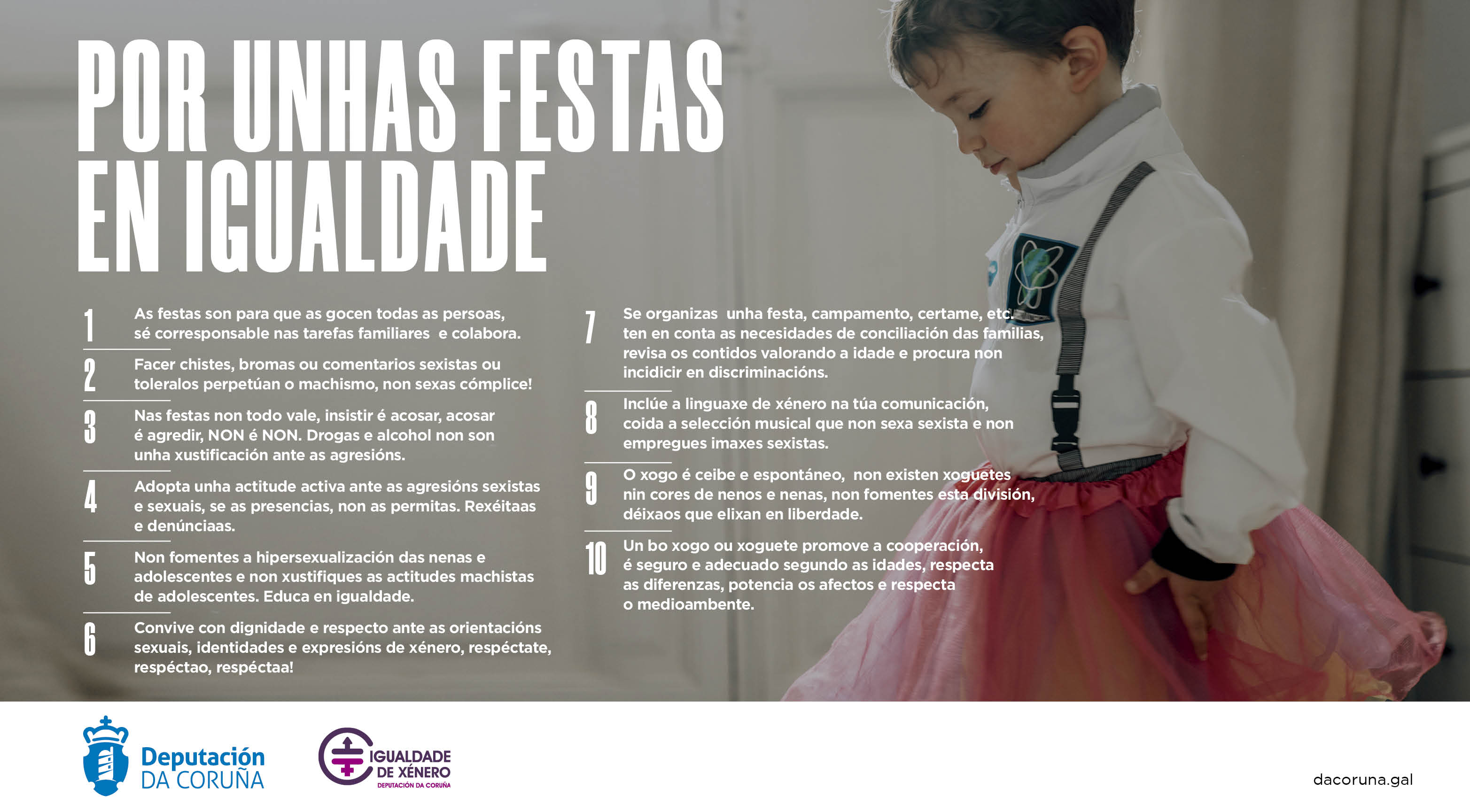 Desde Igualdade da Deputación da Coruña pon en marcha no marco do seu Plan de Igualdade unha campaña para promover unhas festas en igualdade.